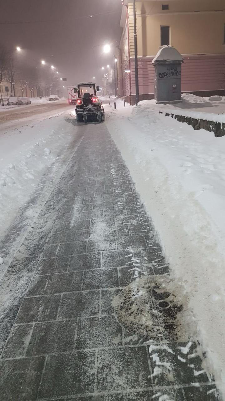 «З 2:00 ночі маємо безперервний сніг у Львові, до прибирання міста задіяно 95 одиниць техніки, понад 1400 працівників та додатково 55 мотоблоків. Разом з директоркою департаменту житлового господарства та інфраструктури ЛМР Оксаною Пригодою та головами районів здійснюємо протягом ночі і ранку обʼїзди містом для оперативного вирішення питань», – розповів Андрій Москаленко.