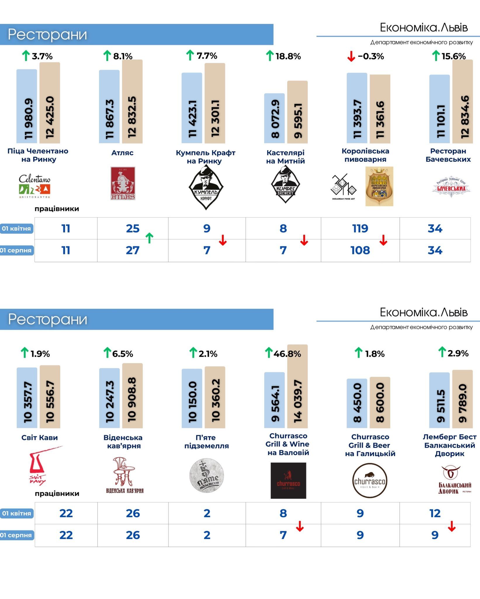 - Ресторація Бачевських – з 11 тис. грн до 12,8 тис. грн на місяць (+15,6%).