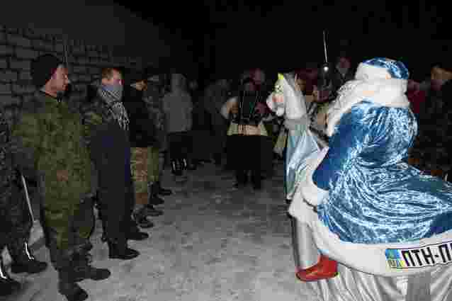 Переодягнувся у Діда Мороза начальник Львівського будинку офіцерів Віталій Провозін, який і був ініціатором новорічної подорожі в зону АТО.
