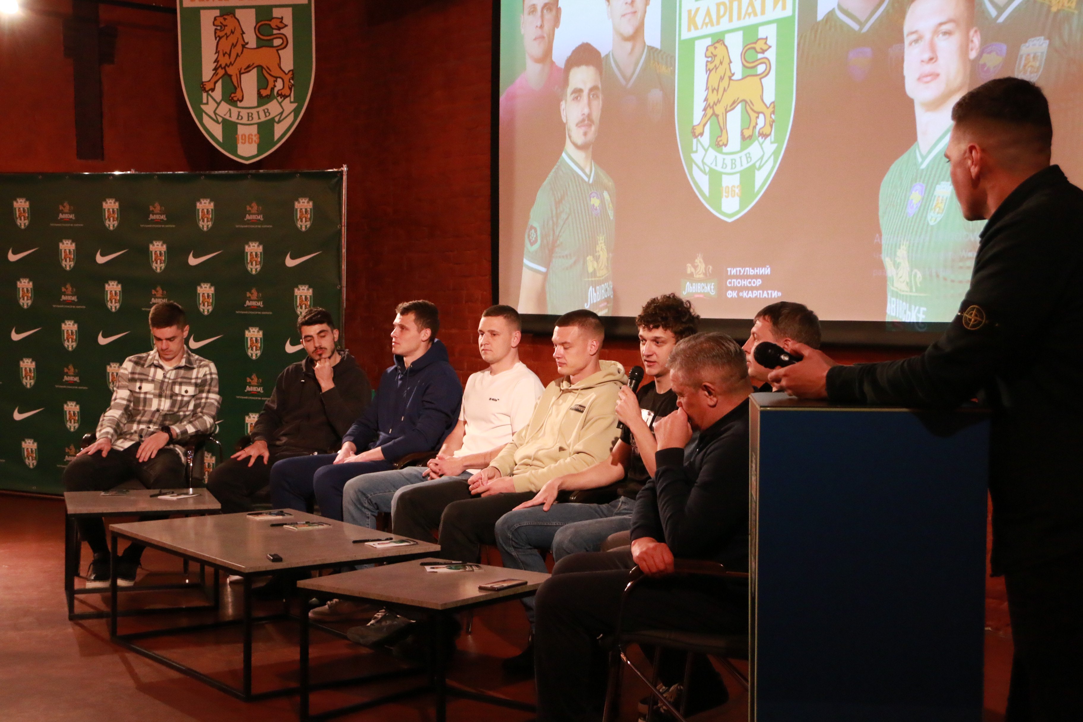 Керівництво та нові гравці футбольного клубу «Карпати» у понеділок, 3 квітня, провели зустріч з вболівальниками. Команда 8 квітня відновлює офіційні матчі та змагатиметься у восьми поєдинках Першої ліги, щоб потрапити у Прем'єр-лігу.