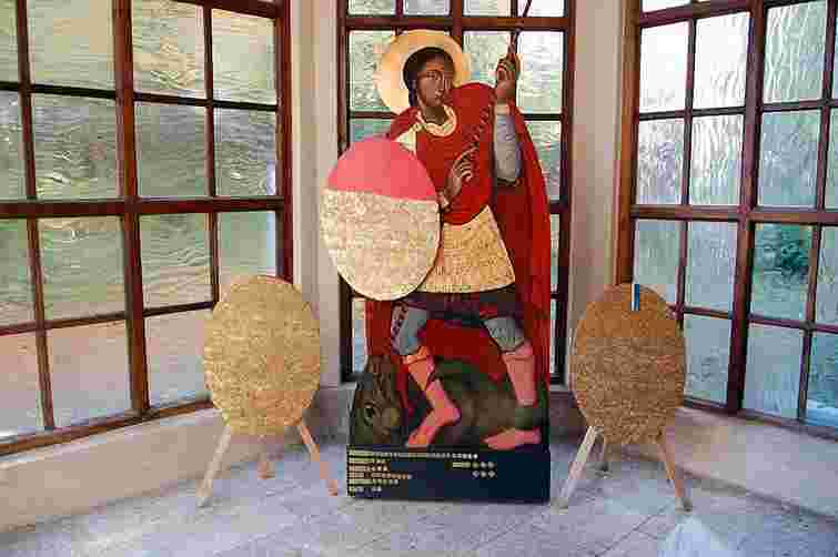 У рамках проекту «Юрій Змієборець і святі воїни» фігуру «Львівського лицаря» та скриньку для збору коштів для бійців АТО встановили у холі Національного музею на просп. Свободи, 20.