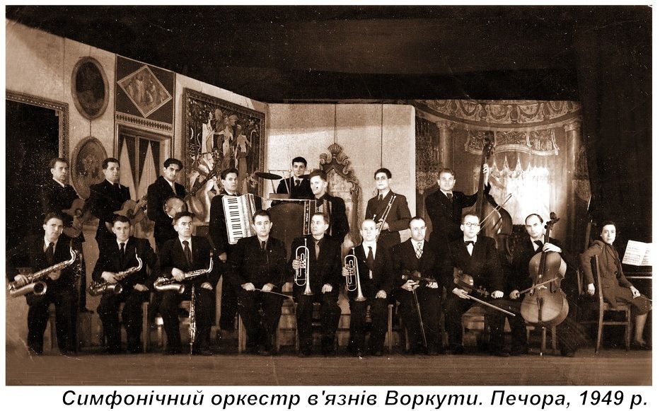Оркестр на Воркуті, серед яких зі скрипкою в руках отець Цегельський (фото зі сторінки історія УГКЦ)
