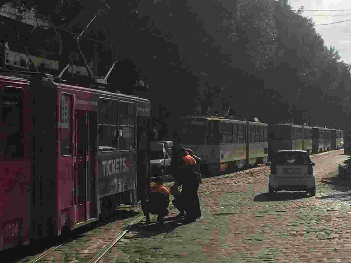 Сьогодні, 21 вересня, на вул. Вітовського, 55 поблизу управління СБУ зійшов з рейок трамвай №3.