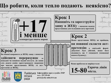 Нагадаємо, 15 жовтня у зв’язку з потеплінням у Львові призупинено опалювальний сезон, який розпочався 12 жовтня. . Водночас три поліклініки не отримували тепла з технічних причин. Це поліклініка №5 на вул. Виговського, №3 на вул. Озеркевича та поліклініка на вул. Римлянина, 2.