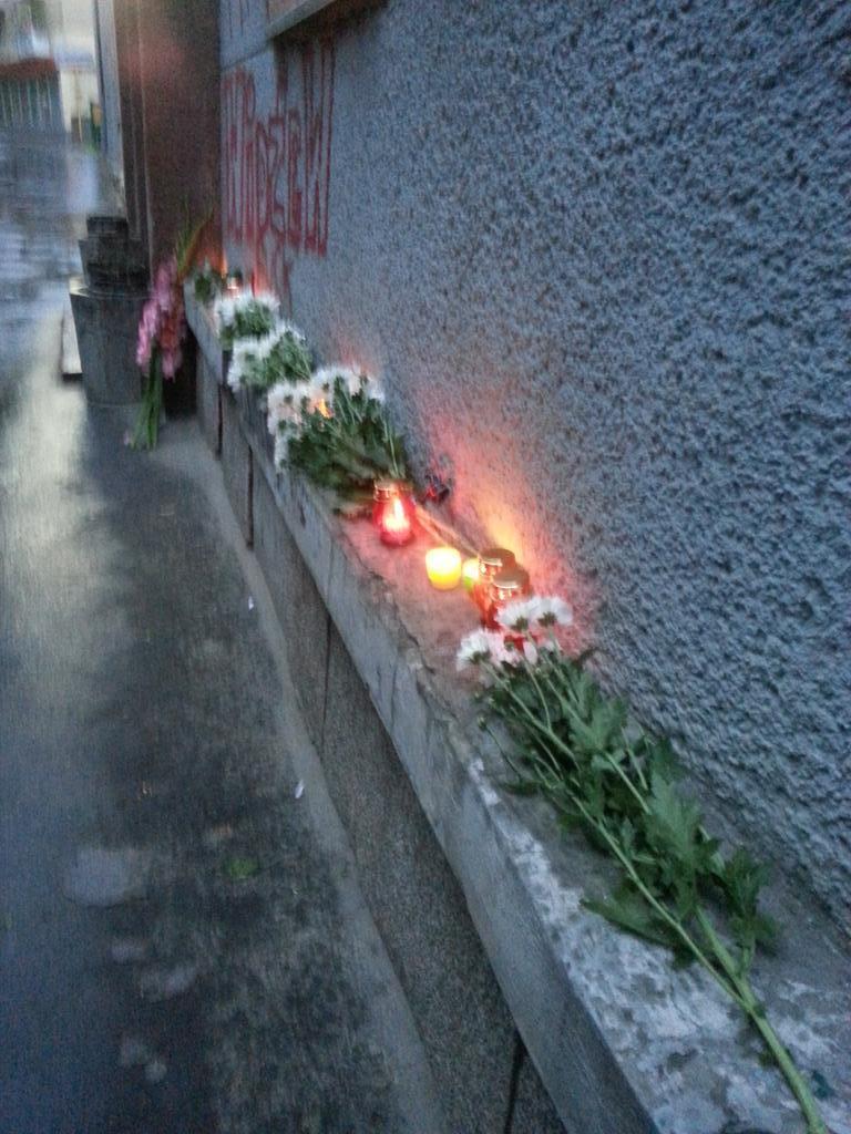 Містяни під вікнами амбасади запалюють лампадки, а також кладуть квіти.
