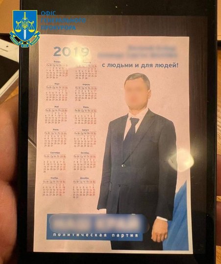 Під час обшуків у Києві та Львові правоохоронці виявили печатки офшорних фірм, листування та господарську документацію. На одному з фото Офісу генпрокурора опублікований календар партії «Наш Край».
