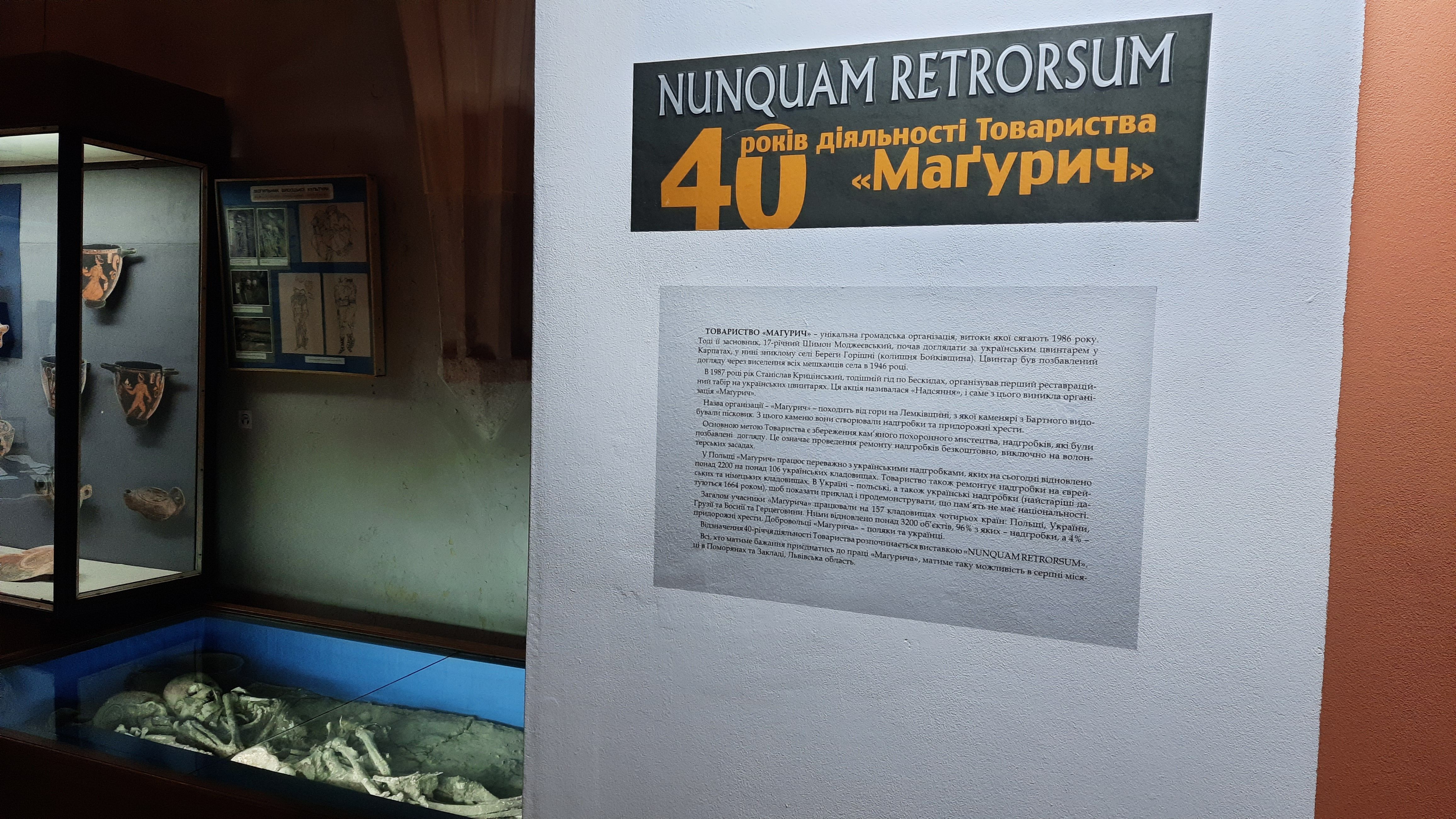 «Запрошую вас всіх на цвинтар!», – жартує Шимон Моджеєвський на відкритті фотовиставки, присвяченій 40-річчю діяльності його громадської організації «Товариство Магурич». Вона зареєстрована у Польщі, але добре відома в Україні, адже відновлює надгробки на старих занедбаних кладовищах польсько-українського прикордоння. Багатолітні зусилля «Магурича» можна оцінити десятками мільйонів, але волонтери цієї організації роблять все безкоштовно – за підтримки благодійних пожертв, а часом і грантів. Підсумок багаторічної діяльності налічує понад 100 літніх волонтерських таборів, 1200 учасників, 157 цвинтарів та 3200 відреставрованих обʼєктів у чотирьох країнах. З них 2200 – це надгробки на могилах українців у Польщі.