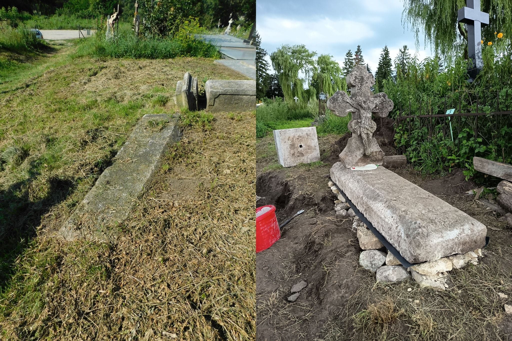 Вигляд того самого місця на кладовищі у селі Заклад у 2021 і 2025 роках (фото «Магурича»)