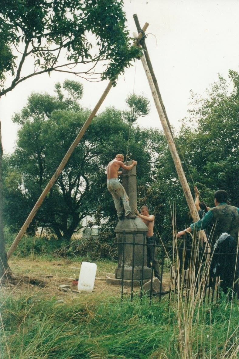 На другий рік таборів вони викопали із землі старий надгробок, розламаний на 250 уламків. «Тоді ми не знали, що з ним робити, і закопали назад. Але через 5 років повернулися і відновили. Він не має хреста, не має напису, але цілий», – пригадує Шимон Моджеєвський.