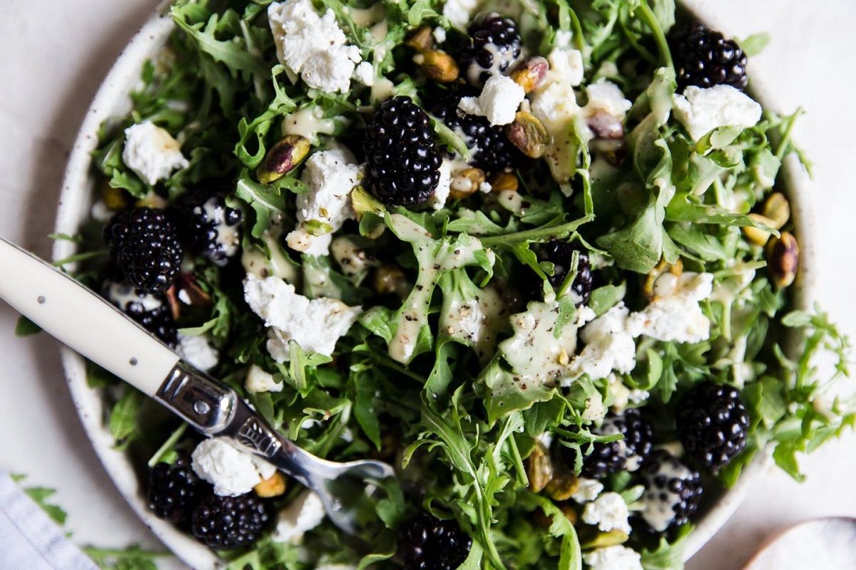 Салат із шпинатом, ожиною та фетою