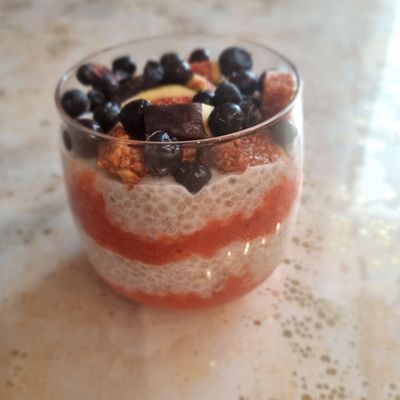 Чіа-пудинг з малиною та лохиною