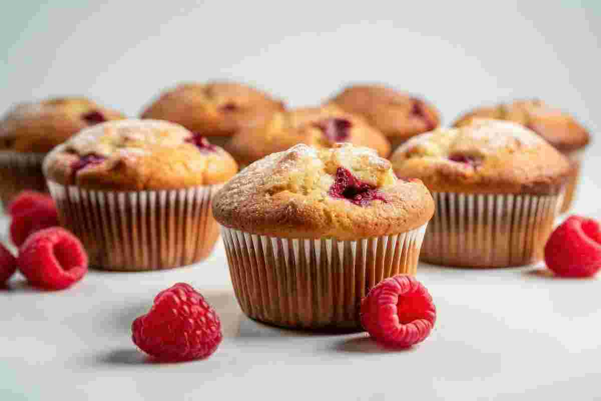 Поставте 2 малини у верхній частині кожного мафіна, щоб вони трохи стирчали. Випікайте 8 хвилин, потім зменште температуру в духовці до 180 °C і випікайте ще 20-25 хвилин, поки мафіни не піднімуться і не стануть золотистими.