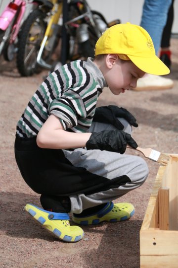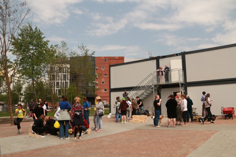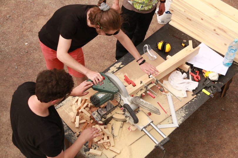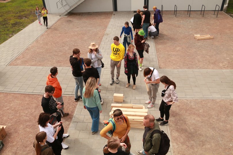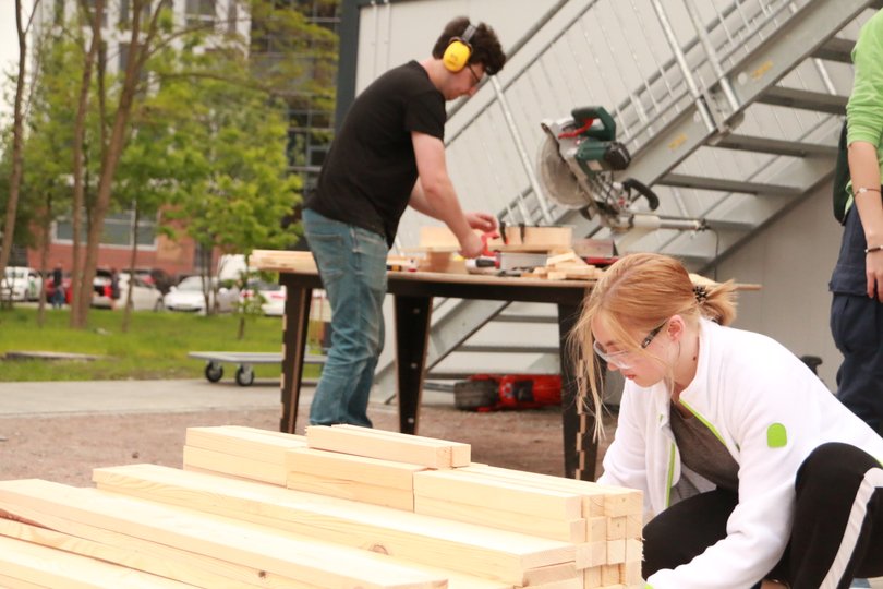 Робота пришвидшується, коли до модульного містечка приходять активісти урбаністичного інтенсиву від «Українська спілка молодих географів» в межах програми Upshift. Це географи, урбаністи та будівельники зі Львова, Луцька, Тернополя, Києва. Дівчата та хлопці з'єднують дошки для грядок, шліфують готові коробки. Навколо них юрмляться діти, час від часу підходять зацікавлені дорослі.