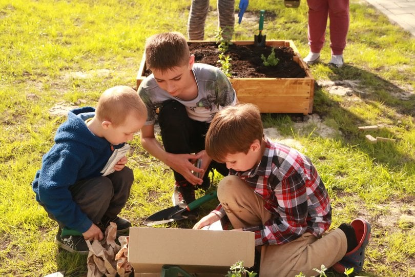 Попри те, що мешканці модульного містечка облаштували всі грядки, робота ще триває. Діти, які захопились городництвом, створюють город на околиці помешкань. Анжеліка каже, що вони посіяли шпинат, коріандр і дуже багато моркви.