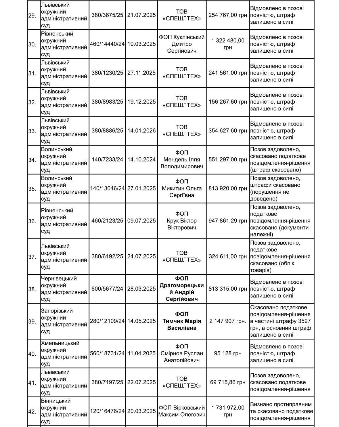 Загальна сума штрафних санкцій за результатами аналізу 68 судових рішень становить 35,723 млн грн.