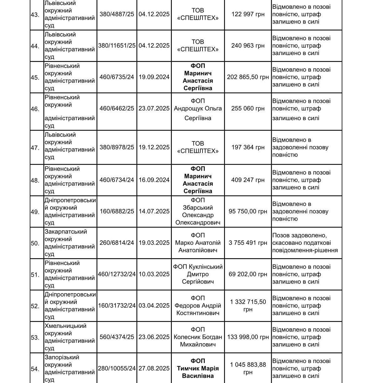 «Показовим є те, що з усіх цих справ щодо оскарження рішень ДПС лише одна датується 2019 роком, тоді як усі інші припадають на 2024–2025 роки, що свідчить про різке зростання кількості відповідних спорів у зазначений період. Така кількість справ виникла після публікацій на YouTube-каналі «Плінський media» щодо реалізації техніки Apple без видачі фіскальних чеків, а також щодо ввезення цієї техніки на територію України без сплати митних платежів і податків», – зазначив журналіст.