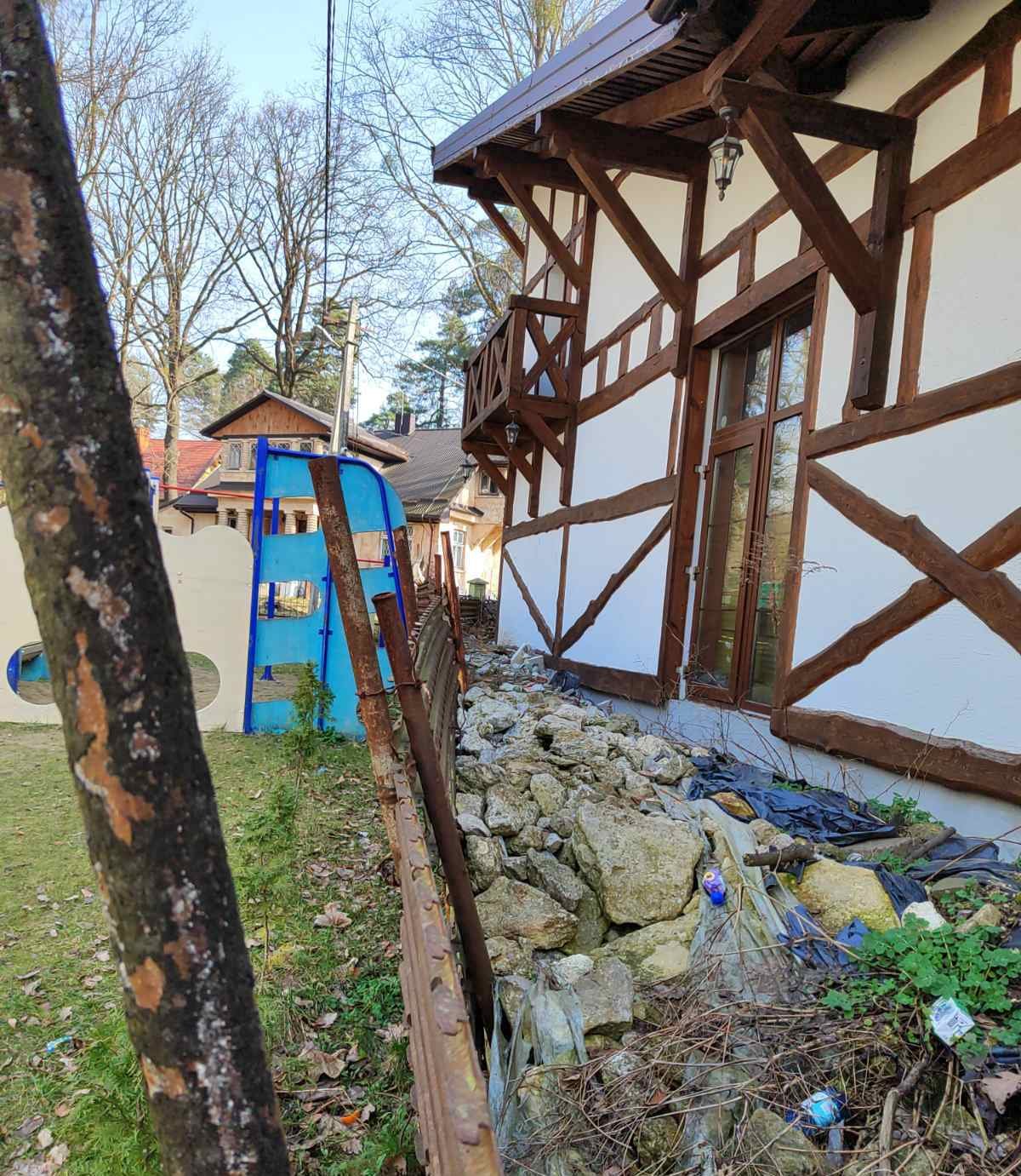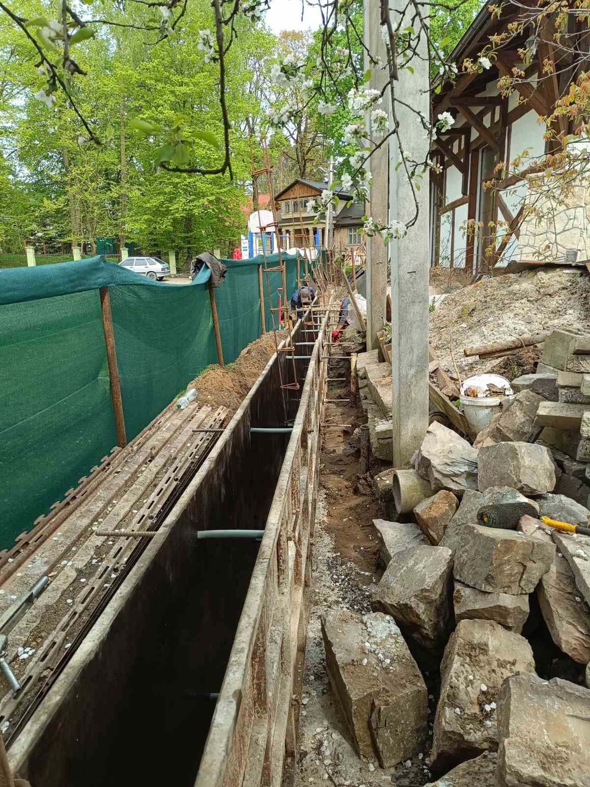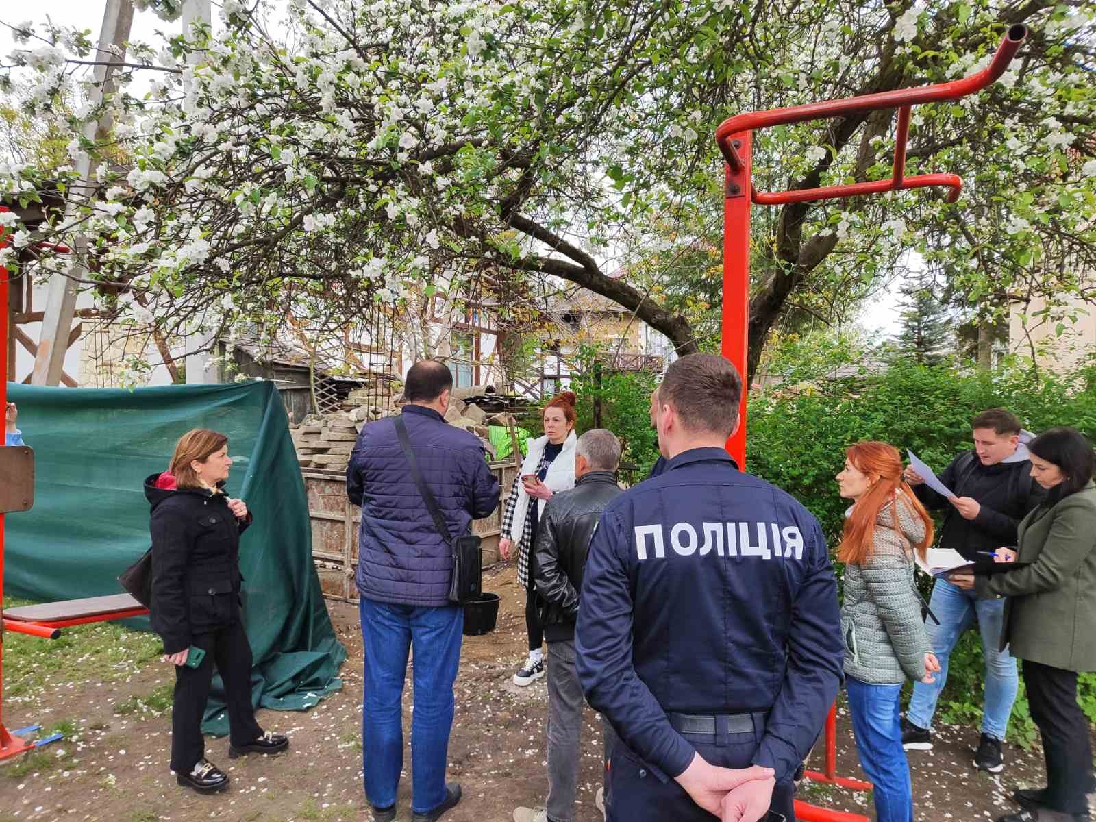 «По сусідству – шкільний спортивний майданчик, на якому завжди багато учнів. Власник ресторану таки забрав аварійний старий паркан. Але коли почав заливати капітальну бетонну конструкцію нового паркану – захопив територію школи, електричні опори, які входять до охоронної зони. З'ясувалося також, що ще за часів селищної ради відгородив частину стежки, яка є у комунальній власності», – йдеться в повідомленні департаменту.