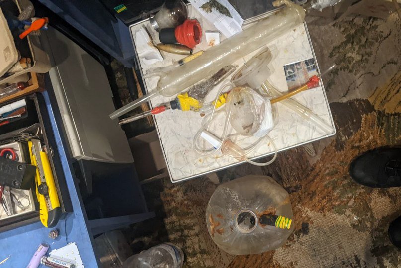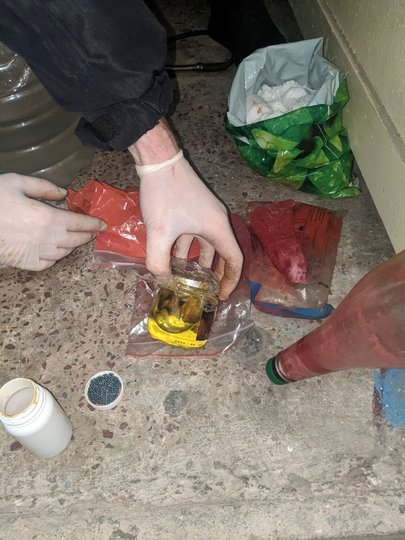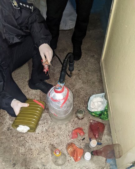 «Шостого лютого під час санкціонованого обшуку в квартирі за місцем його проживання правоохоронці виявили і вилучили лабораторне обладнання для виготовлення метамфетаміну, ємності із соляною кислотою, речовину із вмістом псевдоефедрину, червоний фосфор, сухий гранульований йод, скляні ємності та трубки, за допомогою яких виготовляють готову наркотичну речовину, близько 2 грамів готового психотропу, марихуану та пристрої для вживання наркотиків», – йдеться у повідомленні.