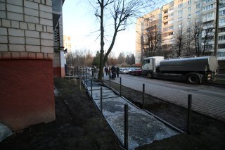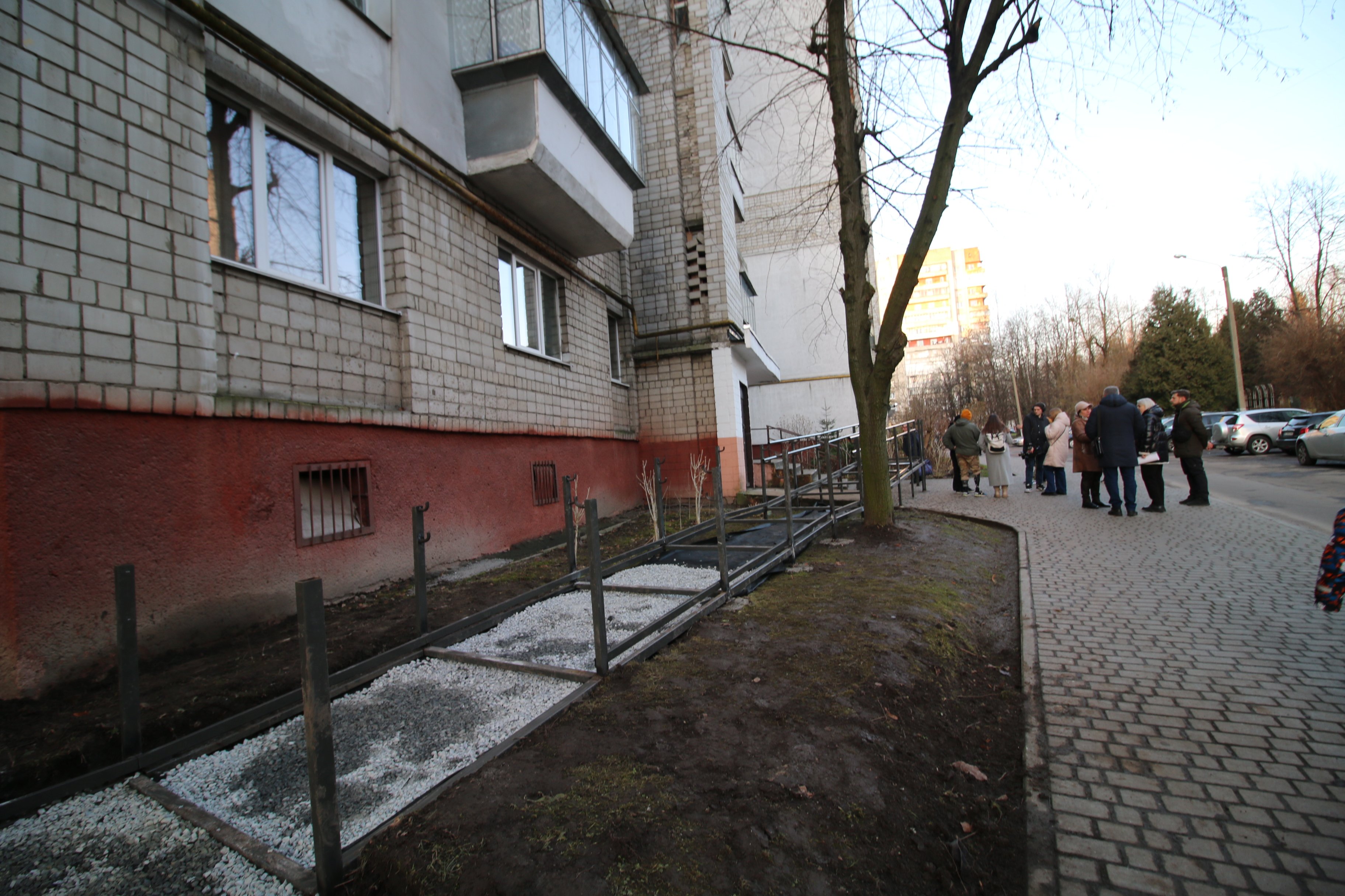 «У будинку також треба міняти двері, ліфт та підйом до нього. Ми починаємо з пандуса, а далі вже люди мали б взяти участь у співфінансуванні за міською програмою, яка передбачає, що 90% оплачує місто, а 10% – мешканці. Якщо ж говорити щодо правильності облаштування пандуса, то зауважень немає. Люди просили залишити доступ до комори. З іншого боку ми не могли облаштувати пандус, бо там є укриття. Менший пандус робити не можемо, бо це не відповідатиме нормам», – сказала Ірина Маруняк після обстеження будинку.