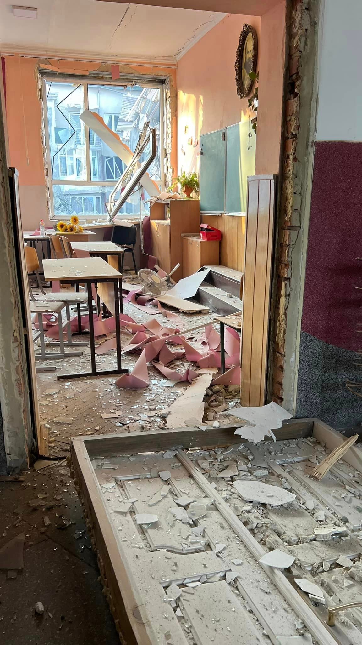 Начальник міського управління освіти Андрій Закалюк повідомив, що пошкоджені три школи і Центр творчості.