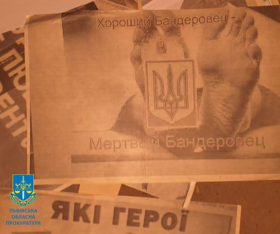 Окрім цього, у чоловіка також знайшли зразки форми правоохоронних органів, комуністичну та проросійську символіку, журнали з пропагандою «руського миру», а також ножі та різні спецзасоби (зокрема кайданки, електрошокер). Затриманим виявився 61-річний мешканець Червонограда.