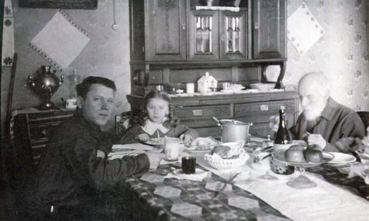 під час голоду, коли українські селяни вмирали на вулицях Києва, він підібрав розпухлу від голоду 15-річну сироту і дав їй притулок;