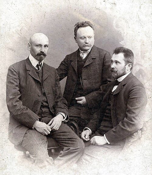 Михайло Коцюбинський, Іван Франко та Володимир Гнатюк у Львові, 1905 рік (фото з Вікіпедії)