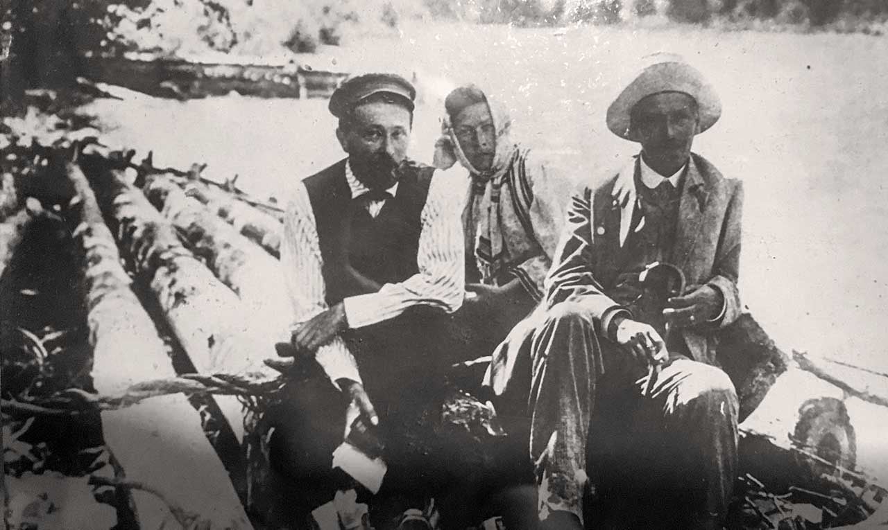 Володимир Гнатюк та Михайло Коцюбинський на дарабі. Криворівня, 1911 рік (фото ЦДАМЛМ)