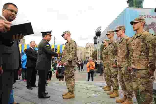 «Сьогодні на Майдані Незалежності в Києві після урочистого проходження військ міністр оборони Степан Полторак вручив відзнаки Міністерства оборони України шістьом військовослужбовцям зі складу 45-й Бригадної бойової групи Національної гвардії США (штат Оклахома)», - сказано в ньому.
