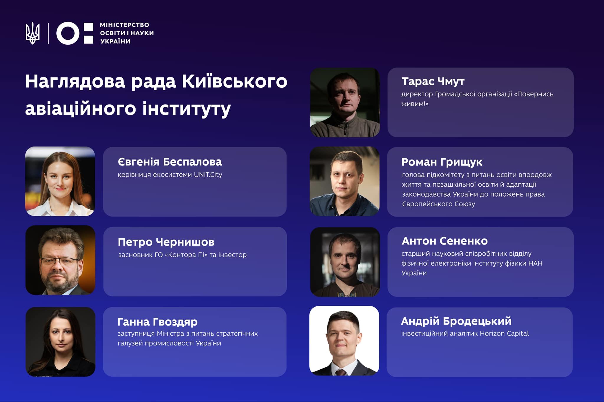 КАІ став третім закладом вищої освіти в Україні, у якому запровадили наглядову раду. До її складу увійшли 7 людей. Про це у середу, 5 лютого, повідомило Міністерство освіти і науки України.