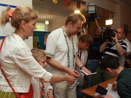 Сім’я міського голови Львова Андрія Садового у неділю, 25 травня, проголосувала на виборчій дільниці №461949, що на вул. Миколи Некрасова, 59.