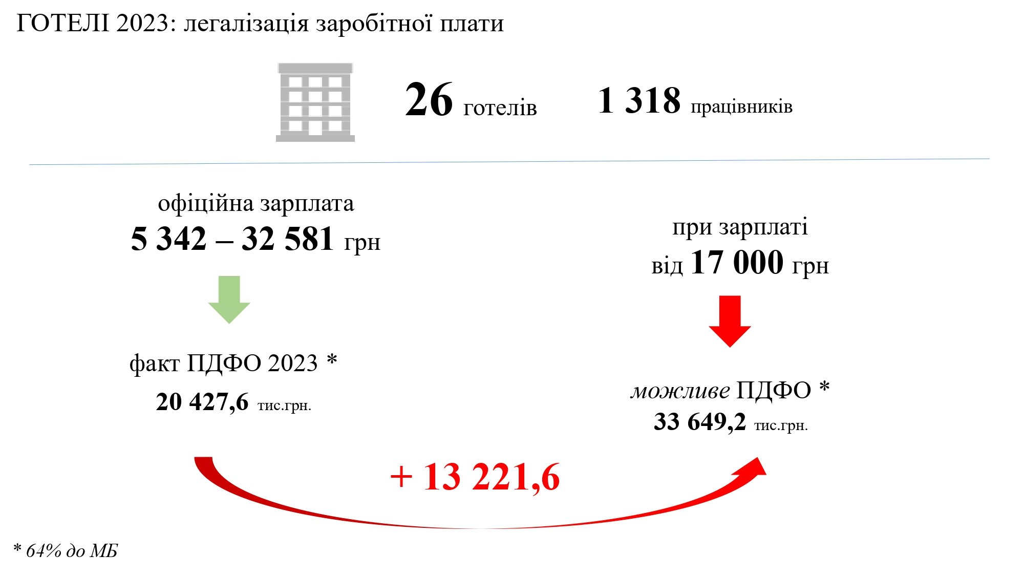 «Для аналізу ми взяли 26 найбільших готелів, які генерують майже половину ПДФО, які ми отримуємо від функціонування готелів. Це 20,4 млн грн», – пояснила Інна Свистун.
