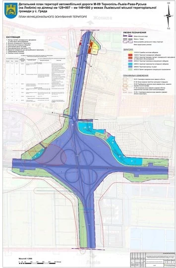 У межах проєктованих ділянок передбачене будівництво дворівневої транспортної розв’язки по типу «лист конюшини» на автодорозі М-09 Тернопіль – Львів – Рава-Руська. Для її будівництва необхідно викупити щонайменше чотири приватні ділянки. Крім цього, пропонується будівництво магазину та ресторану, логістичного центру, складів, парковки та локальних очисних споруд.