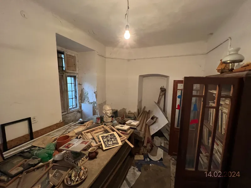Приміщення перебуває в задовільному стані, як свідчать фото лоту в системі Prozorro.Продажі. Воно використовується як творча майстерня і до кінця року перебуває в оренді. Фізично простір поділений на чотири приміщення, тут є пічне опалення, санвузол і вікна висотою 2,7 м.