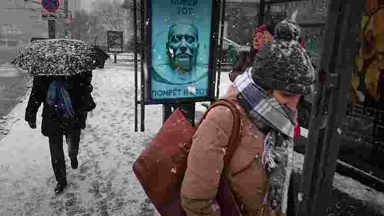 У Москві у суботу, 5 березня, на автобусній зупинці біля Павелецького вокзалу з’явився плакат із посмертною маскою Йосипа Сталіна і написом «Помер той, помре і цей». Про це повідомив фотограф Максим Букін на своїй сторінці у Facebook.