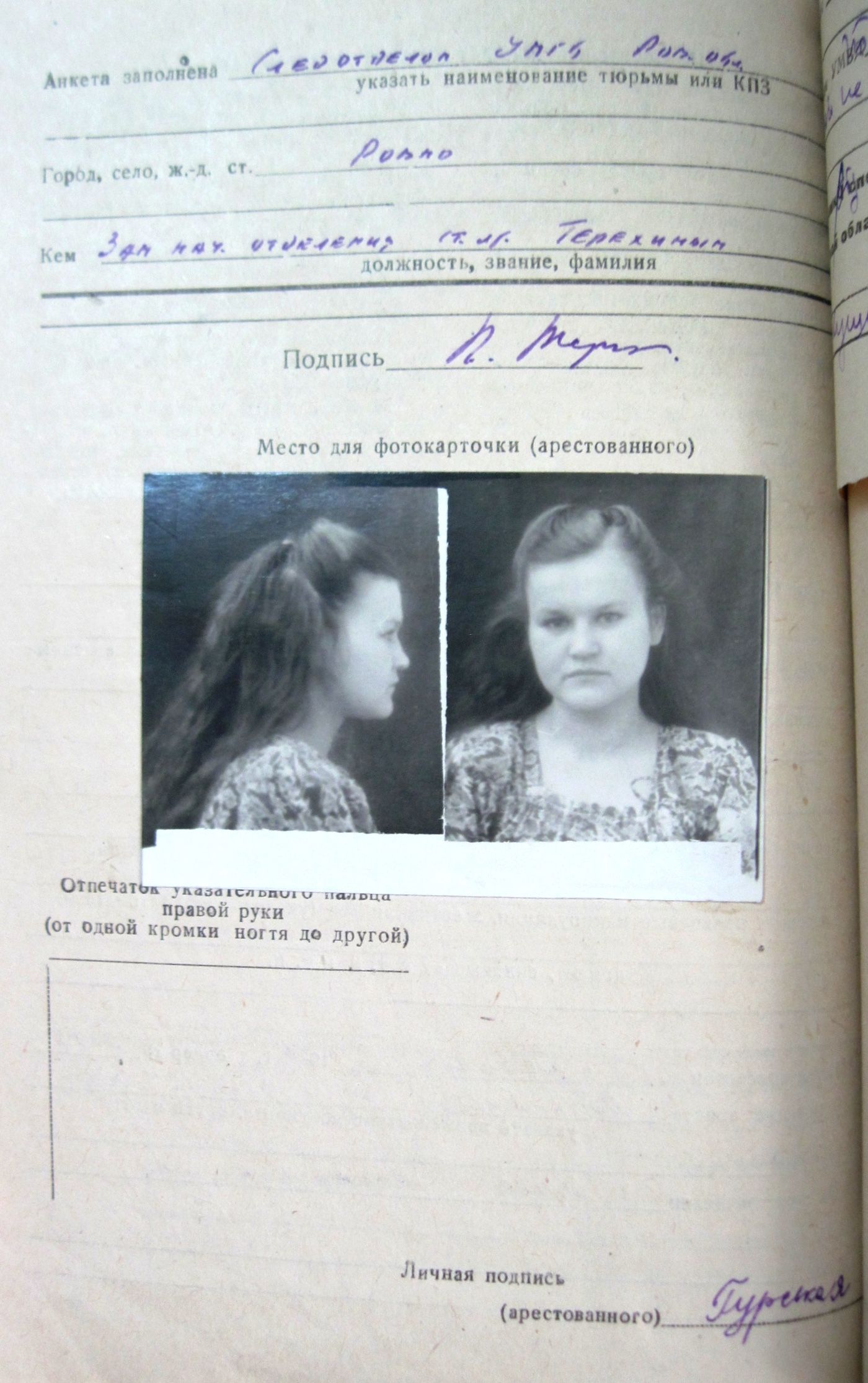 Арештантське фото Галини Герасимчук (Процюк) / Архів управління СБУ у Рівненській області