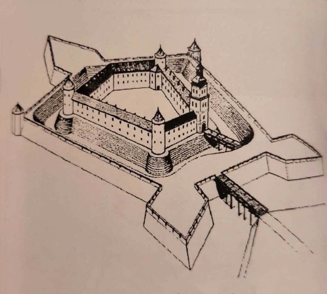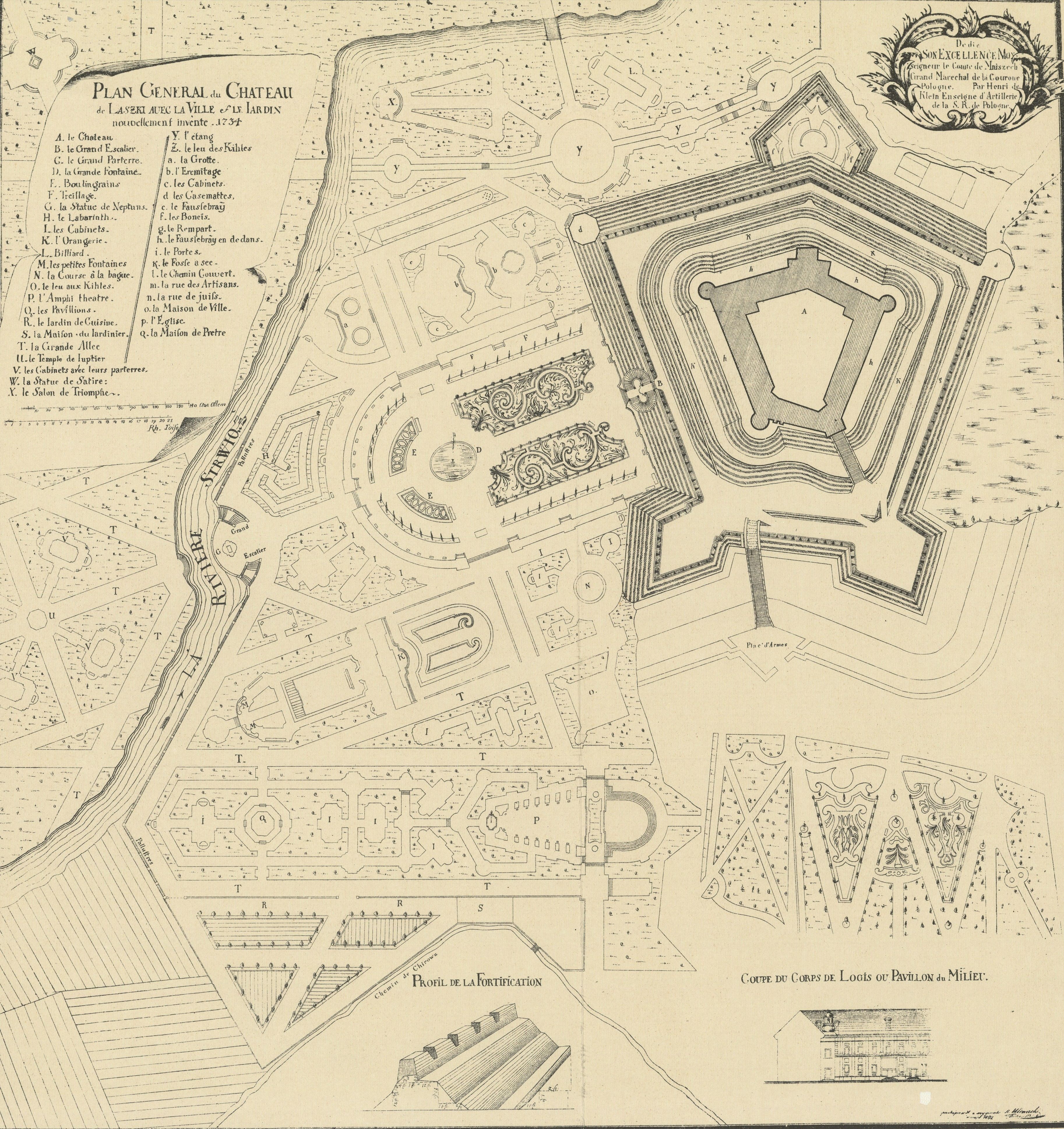 План фортифікацій замку і парку (схема 1734 року Генриха Кляйна, з сайту Polona)