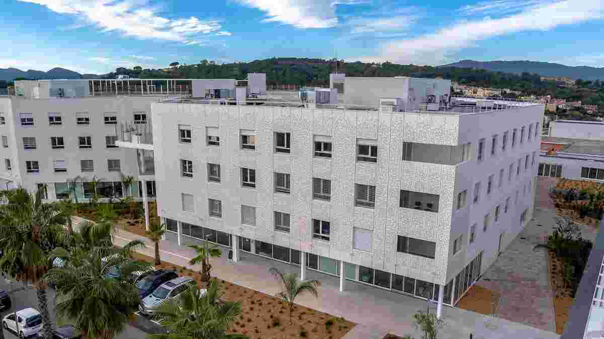 У Каннах геронтологічний центр має три будівлі-блоки, поєднані між собою. На дахах французького центру є сонячні батареї, озеленені тераси з меблями. Кожен блок має закриті подвір’я лише для мешканців геронтологічного центру.