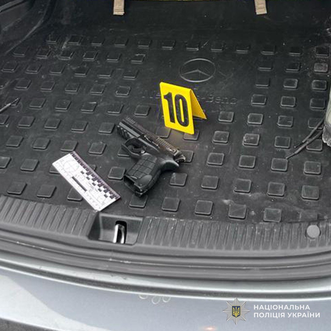 Зловмисника затримали. Слідчі повідомили йому про підозру у замаху на вбивство двох осіб (ч.2 ст.15 – п.1 ч.2 ст.115 ККУ). Санкція статті передбачає позбавлення волі на строк від десяти до 15 років або довічне позбавлення волі. Зброю, з якої були здійснені постріли, поліцейські вилучили та скерували на експертне дослідження.