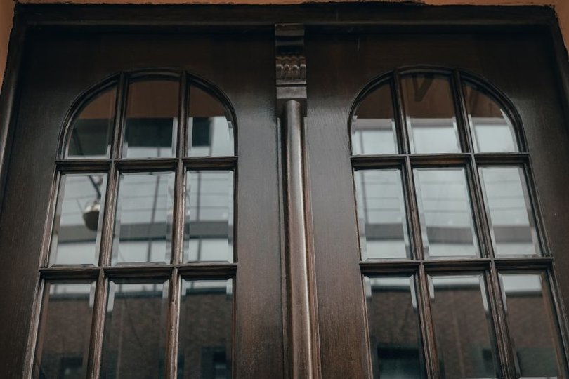 Фахівці замінили пошкоджену деревину, встановили нові ручки та фацетоване засклення. Втрачене декоративне оздоблення відновили за зразком історичних аналогів. Також відреставрували світлик над дверима.