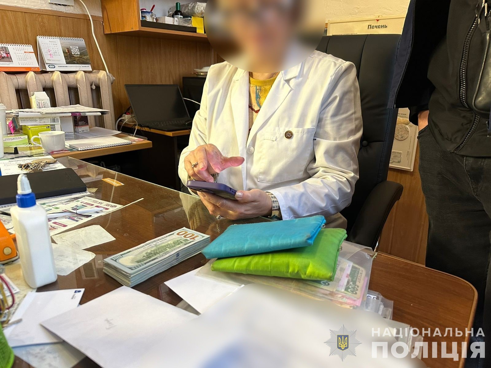Під час обшуків за місцем роботи та місцем проживання підозрюваної поліцейські вилучили гроші у різній валюті на загальну суму 8,4 млн грн. Посадовицю лікарської консультативної комісії затримали та повідомили про підозру за ч. 3 ст. 368 КК України (Прийняття пропозиції, обіцянки або одержання неправомірної вигоди службовою особою).