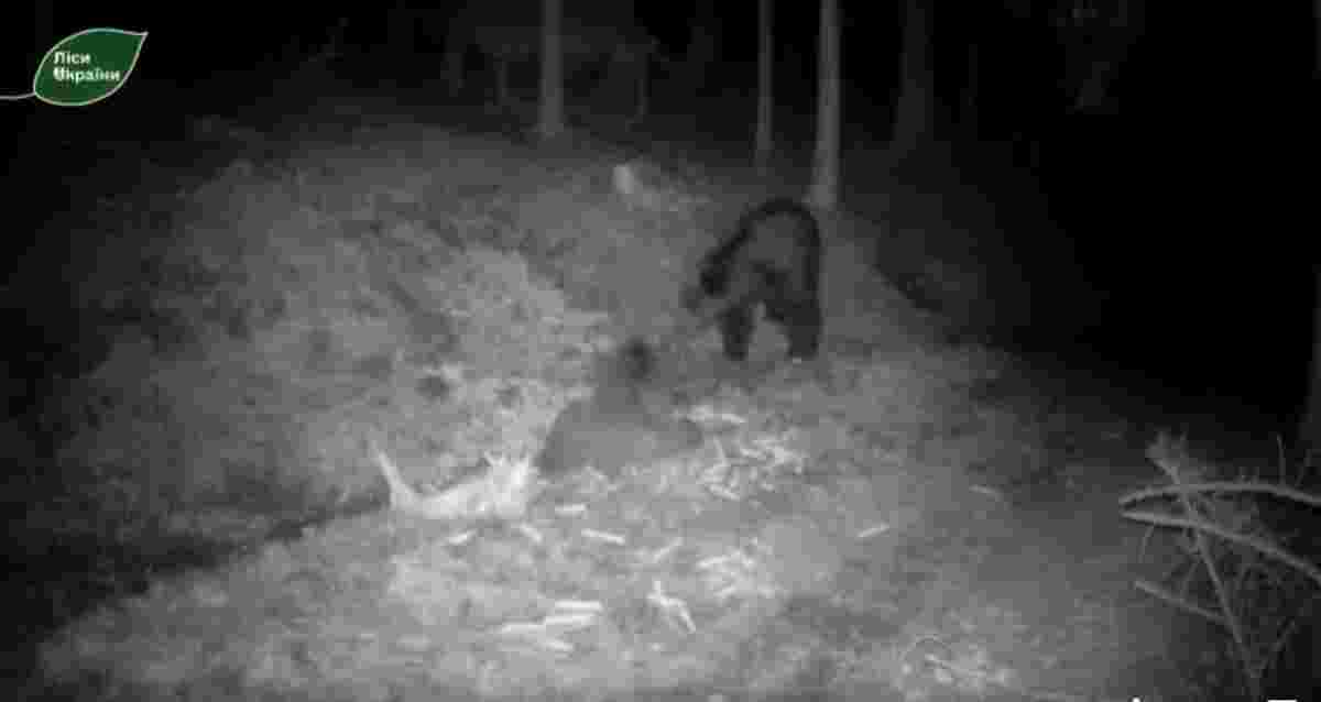 Трьох ведмедів помітили на лісових гірських стежках працівники «Путильського лісового господарства». Тварини потрапили в фотопастки, які раніше розставили лісники. 13 травня фотокамера двічі фіксувала прогулянки та вечерю ведмедів.