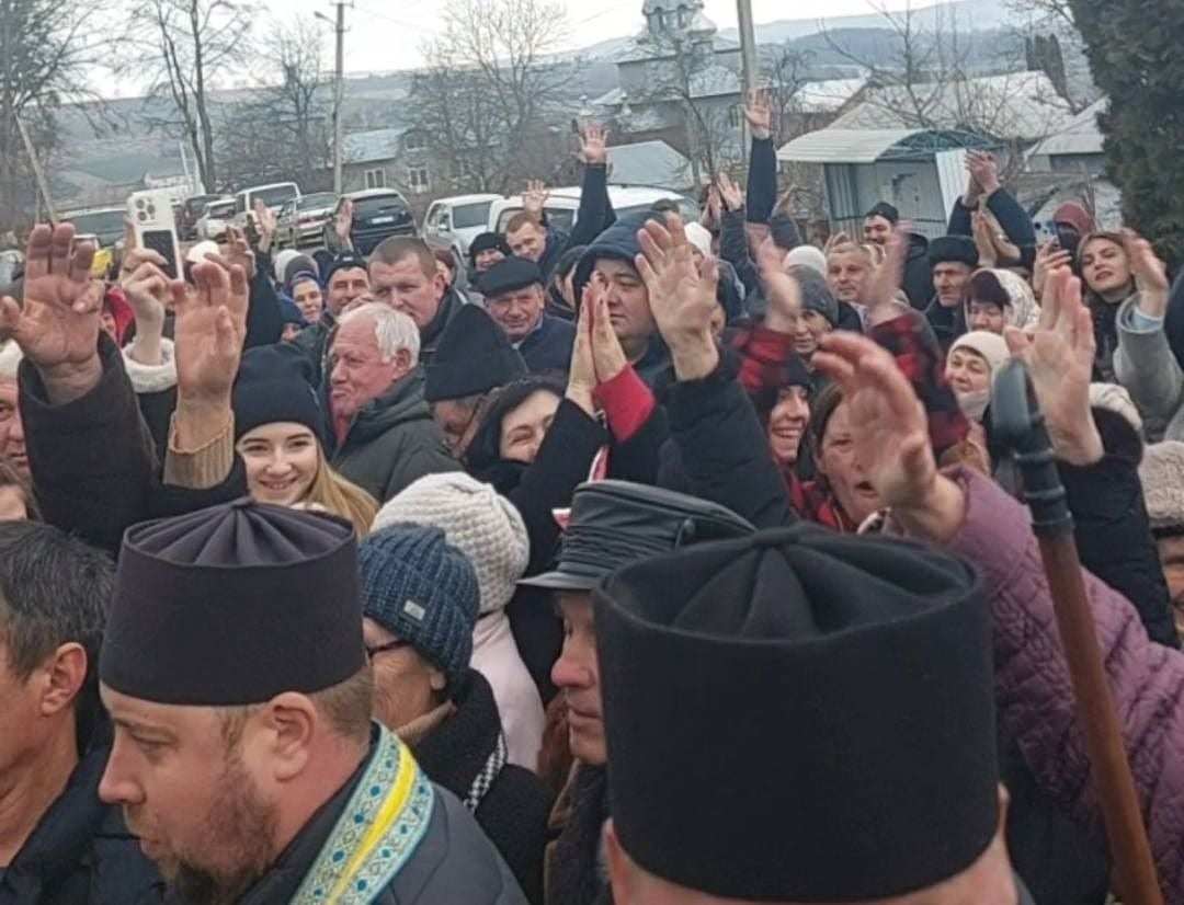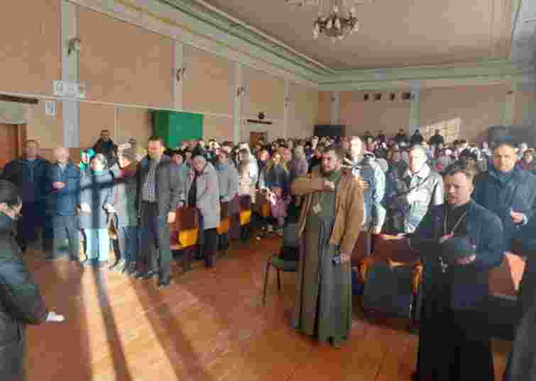 Також біля церкви, де відбулися збори, були присутні прихильники УПЦ МП, однак вони відмовилися реєструватися. Після того, які члени громади проголосували за перехід і новий статут організації, то усім присутнім запропонували помолитися та заспівати гімн України. В цей момент парафіяни УПЦ МП почали кричати: “Ганьба!”
