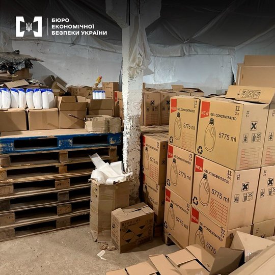 Правоохоронці під час обшуків вилучили побутову хімію з ознаками підробки, обладнання, пакувальну тару та етикетки, повідомили в Бюро економічної безпеки в четвер, 13 червня.