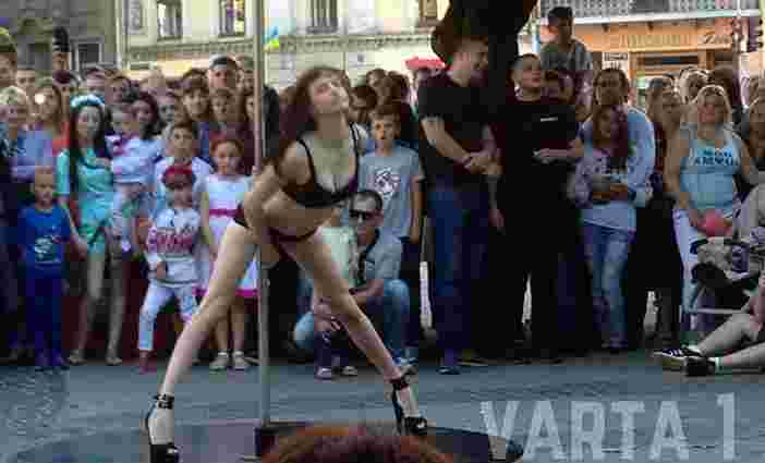 Вчора, 24 серпня, у День незалежності України на площі Галицькій у Львові, біля пам’ятника Данилу Галицькому, один з львівських клубів організував показові виступи танцівниць у стилі пол-денс – танці на пілоні. Про це ZAXID.NET розповіли у прес-службі патрульної поліції Львова.