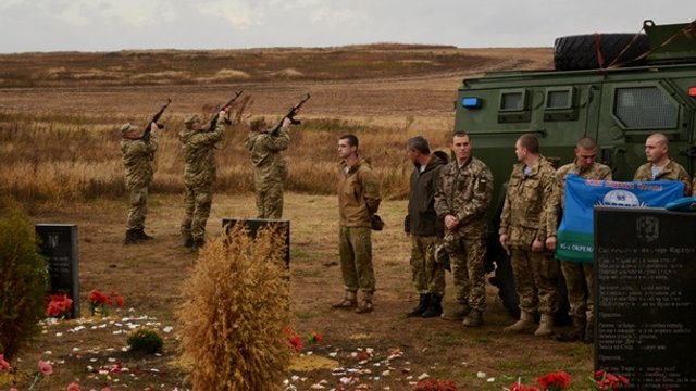 Військовий капелан 81-ї окремої аеромобільної бригади отець Василь провів службу освячення пам'ятника і поминальну літургію.