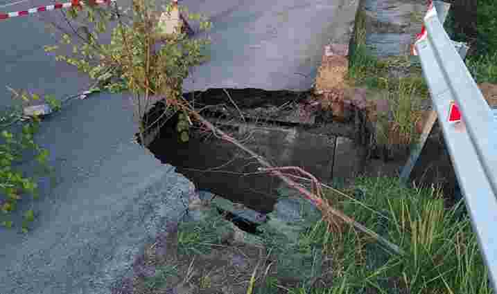 На дорозі біля Нового Роздолу на Львівщині провалилася частина мосту