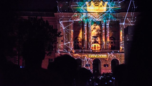 З нагоди 762-річчя Львова на фасаді Львівського національного університету ім.І. Франка показали старі фото та відео про місто з додаванням сучасної проектації. 3D-мапінг супроводжувався ретро-музикою композитора Олеся Коваля.