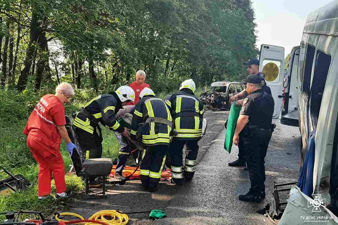 «Попередньо встановлено, що 22-річний водій автомобіля Renault Scenic виїхав на зустрічну смугу руху, де допустив зіткнення з автомобілем Opel Astra та мікроавтобусом Volkwsagen LT сполученням "Стара Ушиця–Хмельницький"», – йдеться у повідомленні.