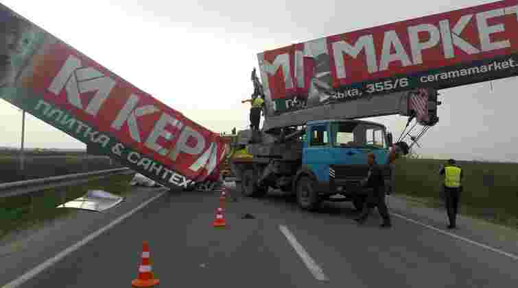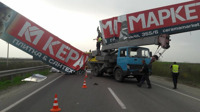 Автокран збив рекламну конструкцію на Кільцевій дорозі Львова, рух транспорту ускладнений
